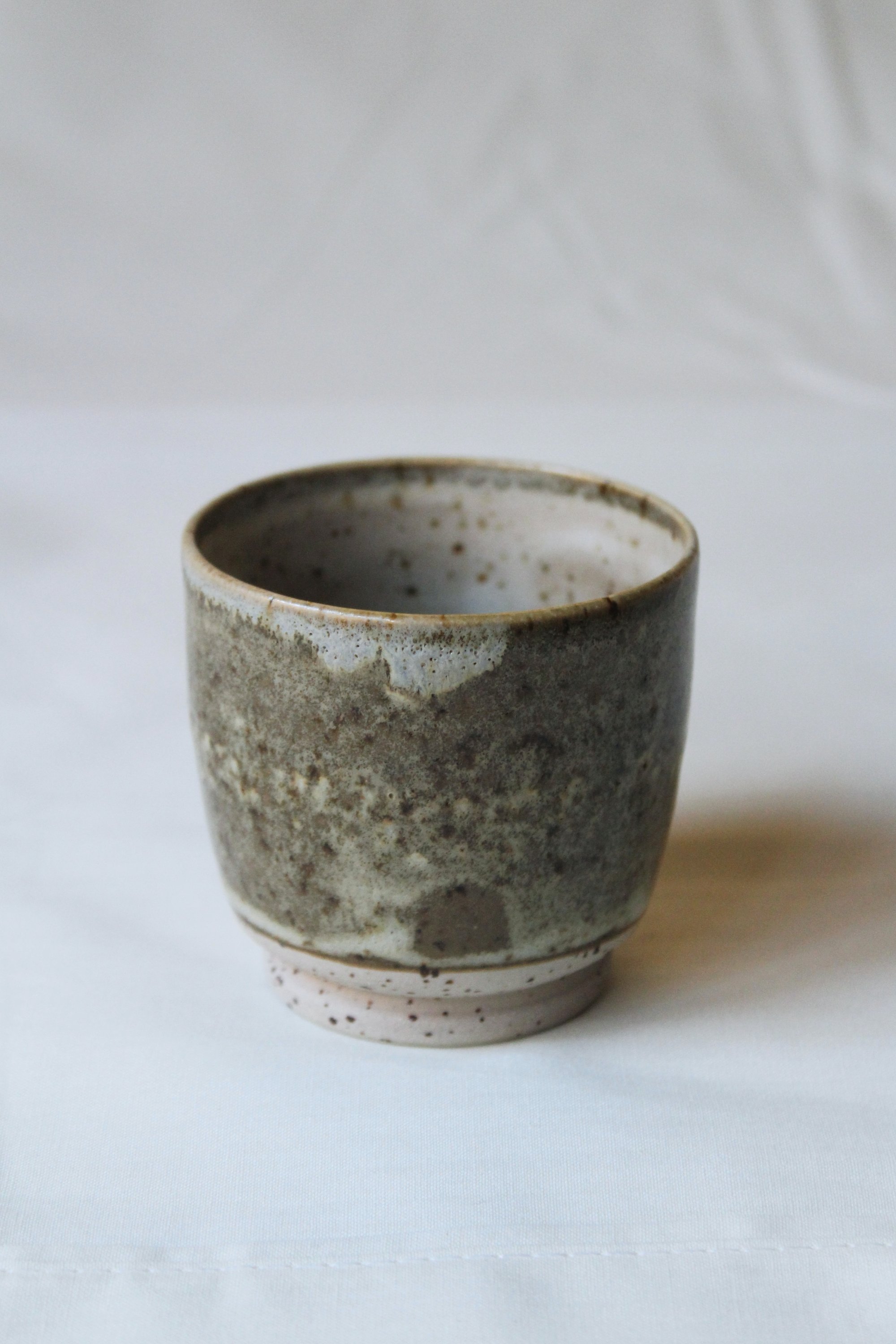 Made in speckled cream clay and finished with a glossy moss glaze.