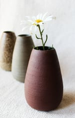 Set of three nude vases in distinct clays; speckled, ashen, and red earth. Glazed solely on the inside with a milky white glaze. Best as a set but can be sold individually.