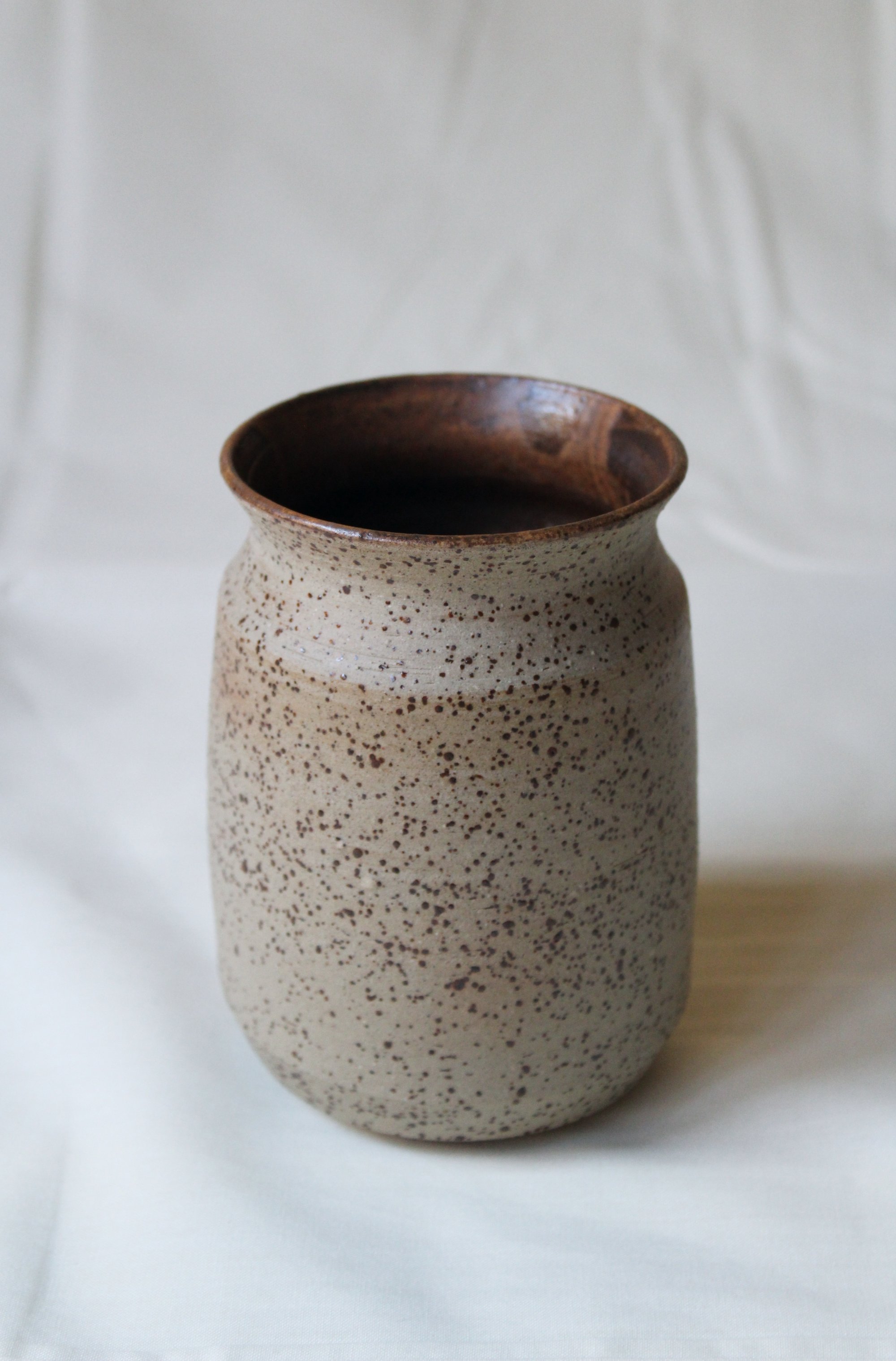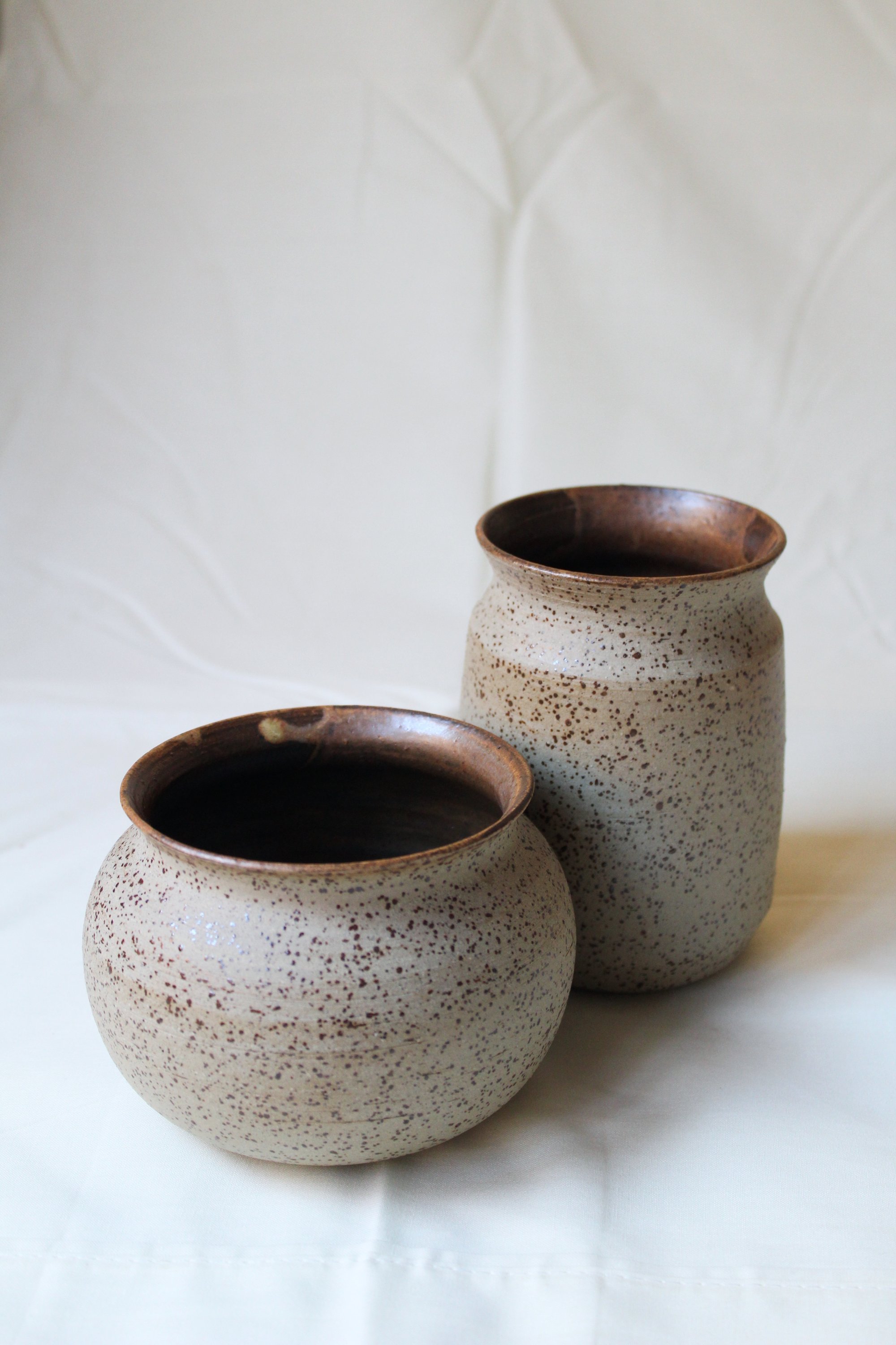 Decorative vases made in speckled cream clay and glazed solely on the inside with a matte coffee glaze.