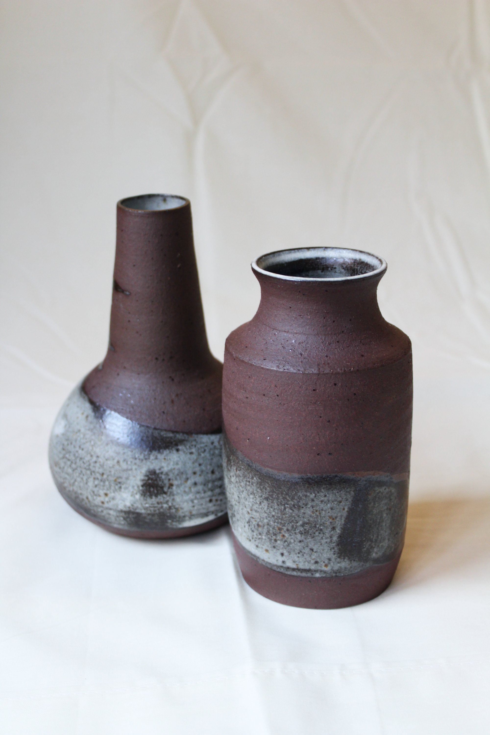 Wheel thrown stoneware pots, fired at 1250 degrees.