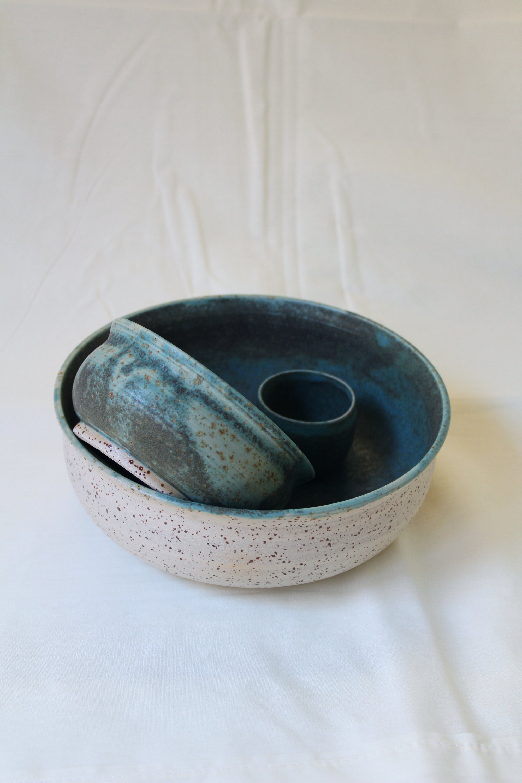 Wheel thrown stoneware pots, fired at 1250 degrees.